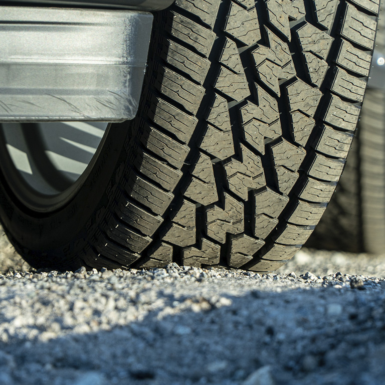 Пятиступенчатая конструкция блоков протектора обеспечивает лучший отвод воды и помогает снизить уровень колесного шума на городских дорогах и в условиях проселочной местности.