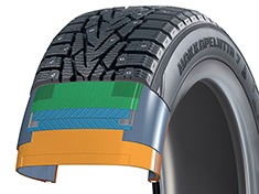 | Nokian Tyres Hakkapeliitta 7 это настоящая революция в создании зимней резины.. Якорный шестигранный шип с расширенным нижним основанием показал невиданное ранее сцепление, как при разгоне, так и при торможении. А усиленный стальной брекер, сохраняя положение шипа неизменным, сделал шип прочным при боковом сопротивлении, повысив поперечное сцепление с трассой. Шины Nokian Tyres Hakkapeliitta 7 имеют ошиповку в восемь рядов по разным сторонам от центральной оси, но при этом количество шипов и масса шины не увеличено. Покрышку украшает совершенно новый рисунок протектора с усовершенствованной конструкцией. Усиленная центральная часть, скошенные плечевые зоны и трёхмерные ламели протектора, а также новейшая резиновая смесь на основе соединения каучука и силики делают покрышки стабильными на любой трассе, легкоуправляемыми, надежными, износостойкими, показывающими превосходные сцепные характеристики при любых погодных условиях. Ещё одна инновация шипованной шины Nokian Tyres Hakkapeliitta 7 - полная бесшумность. Добиться этого инженеры смогли при помощи воздушного амортизатора, выполненного в форме капли и расположенного у основания шипа. | ![]() |